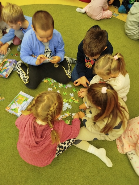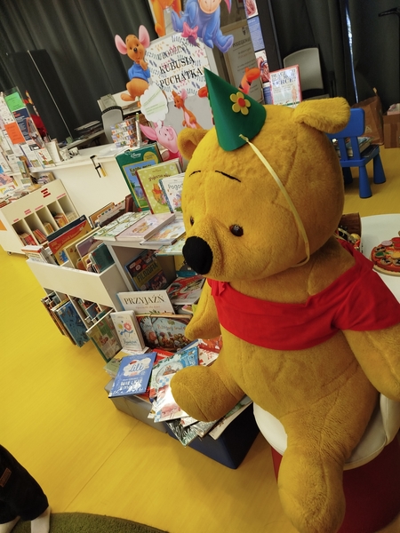 15 października z okazji ogólnopolskich urodzin Kubusia Puchatka, grupa ” Motylków ” odwiedziła Miejsko-Powiatową Bibliotekę Publiczną w Lublińcu. Przywitały nas przemiłe Panie bibliotekarki, które oprowadziły przedszkolaków po wnętrzach budynku. Zatrzymaliśmy się w dziale dla dzieci, a tam czekały na nas niespodzianki. Mieliśmy kilka ciekawych zadań do wykonania: zrozwiazywanie zagadek, układanie puzzli oraz zabawy ruchowe, wszystko dotyczące misia Kubusia. Najwspanialszą atrakcją było spotkanie Puchatka, który bawiła się z nami, opowiadał swoją historię i czytał bajkę. Na pożegnanie rozdał dzieciom słodkie upominki, a my zaśpiewaliśmy naszemu przyjacielowi Kubusiowi huczne „Sto lat”.