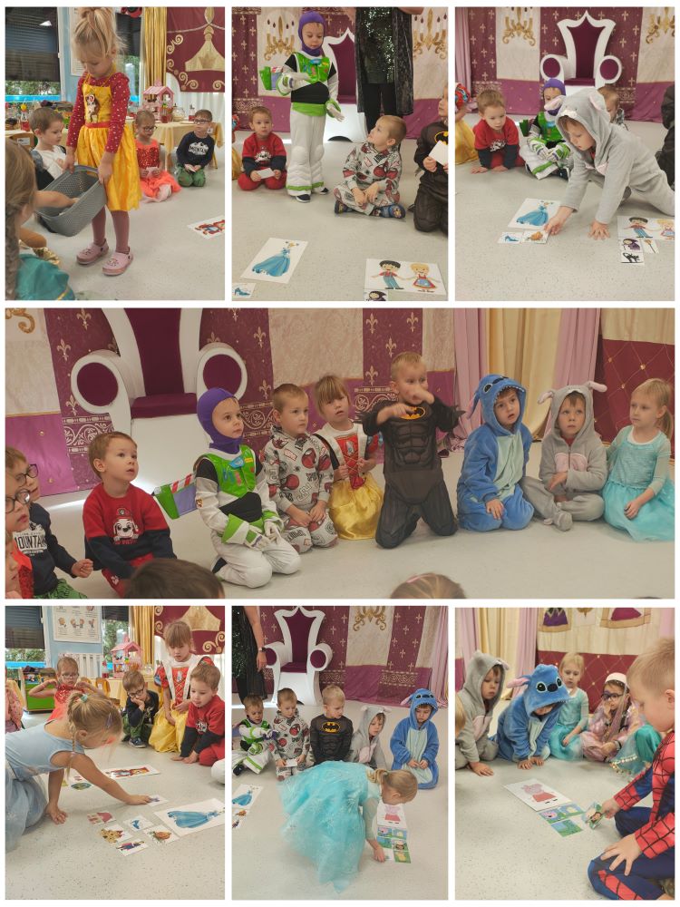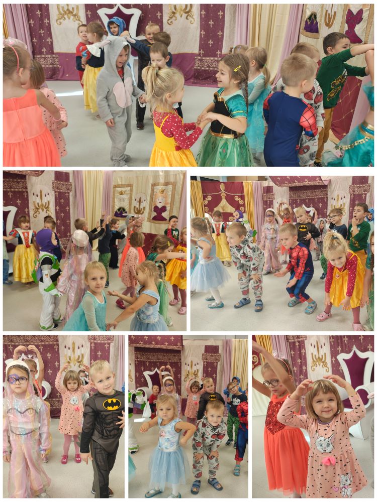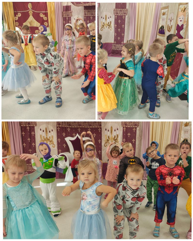 5 listopada sala Biedronek zamieniła się w królewską salę balową. Z okazji Dnia Postaci z Bajek odwiedziły ją wróżki, księżniczki, superbohaterowie. Przybyłych gości witali z portretów król i królowa, a na Kopciuszka czekał królewski tron. Przedszkolaki w swoich przebraniach brały udział w zabawach muzycznych, ruchowych, konkursach, tańcach. Nie zabrakło też wspólnych zdjęć. Ten dzień,  pełen magii, radości i uśmiechu,  na długo pozostanie w naszej pamięci.