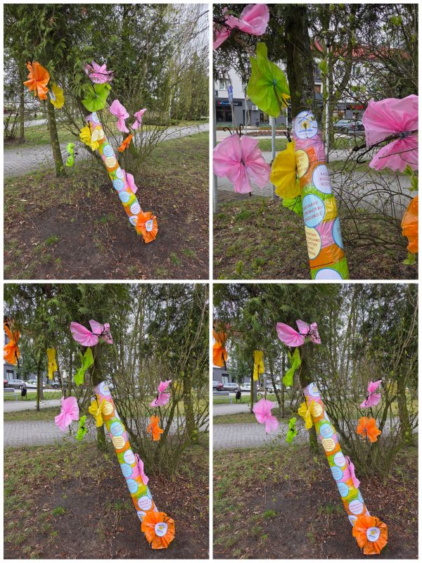 Na drzewie zawisły również hasła promujące akceptację i zrozumienie, takie jak: „Każdy jest inny – każdy jest wyjątkowy”, „Razem tworzymy kolorowy świat” czy „Akceptacja ma znaczenie”. Dzięki nim nasze drzewo stało się nie tylko kolorową ozdobą, ale także ważnym przekazem dla wszystkich.