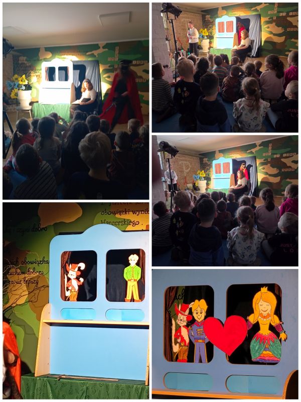 Dnia 12 marca dzieci z grup „Sówki” i „Motylki” wybrały się do Szkoły Podstawowej nr 4. Podczas wizyty miały okazję zwiedzić budynek szkoły, zobaczyć sale lekcyjne oraz poznać atmosferę panującą w szkolnych korytarzach. Największą atrakcją wyjścia był teatrzyk pt. „Kot w butach”, przedstawiony w języku polsko-angielskim. Dzieci z dużym zainteresowaniem oglądały występ, śledząc przygody sprytnego kota, a jednocześnie mogły osłuchać się z językiem angielskim. Serdecznie dziękujemy Dyrekcji, nauczycielom oraz uczniom Szkoły Podstawowej nr 4 za miłe przyjęcie, możliwość zwiedzenia szkoły oraz przygotowanie wspaniałego przedstawienia. To była dla naszych przedszkolaków wyjątkowa i bardzo radosna wizyta.