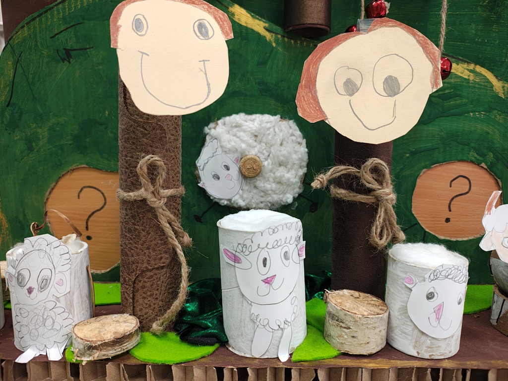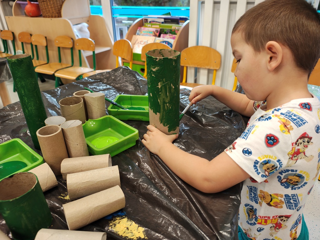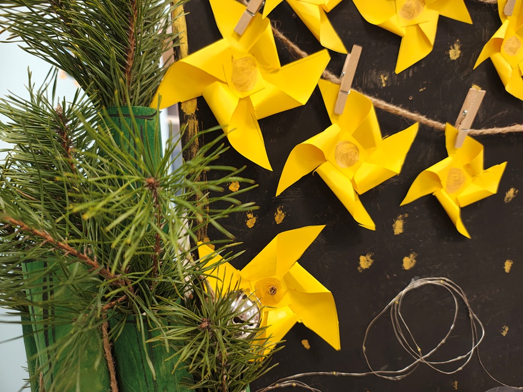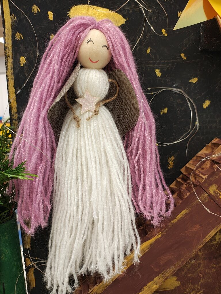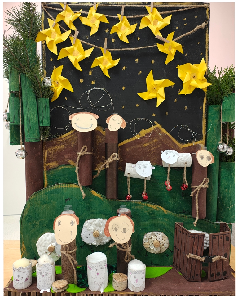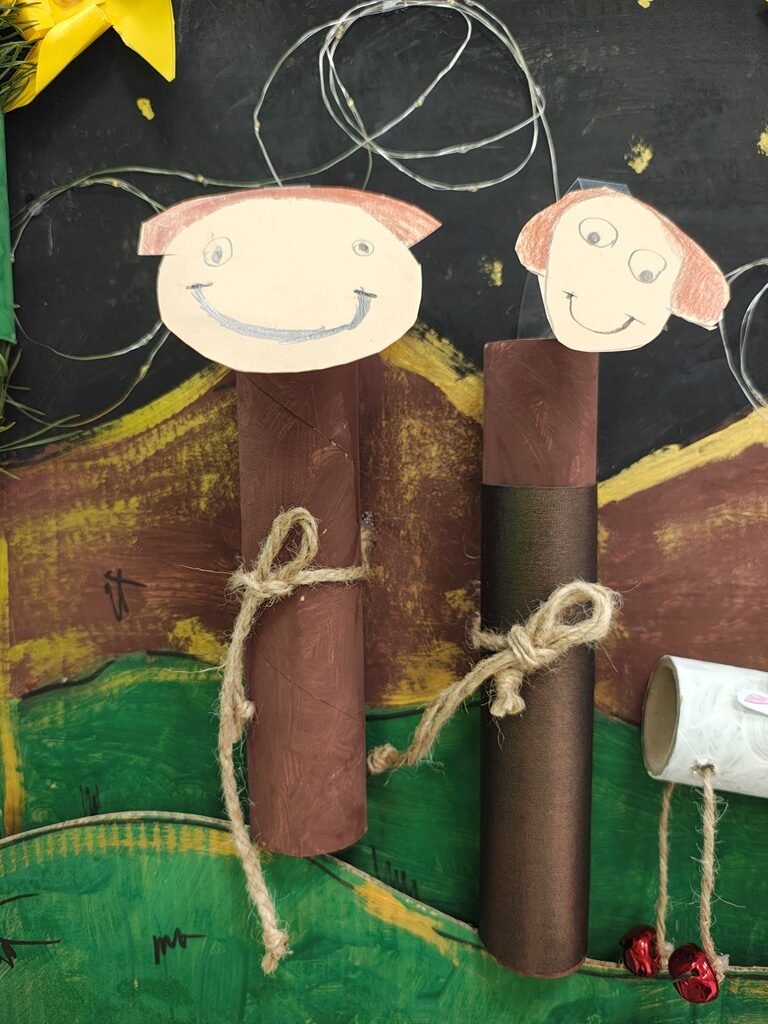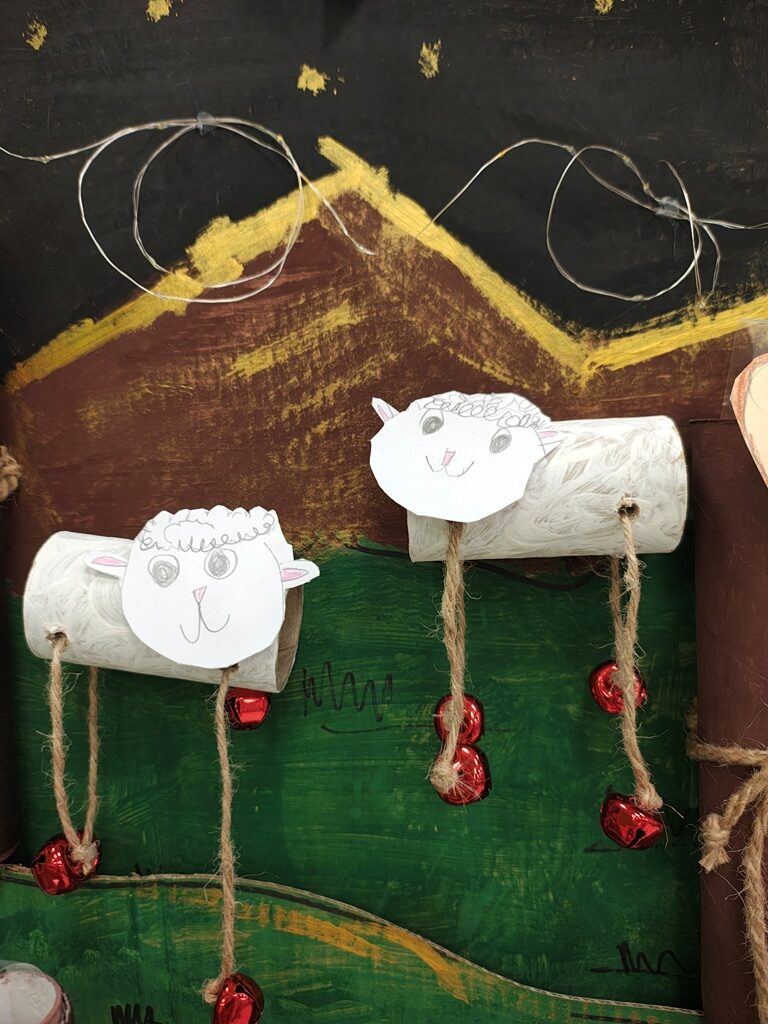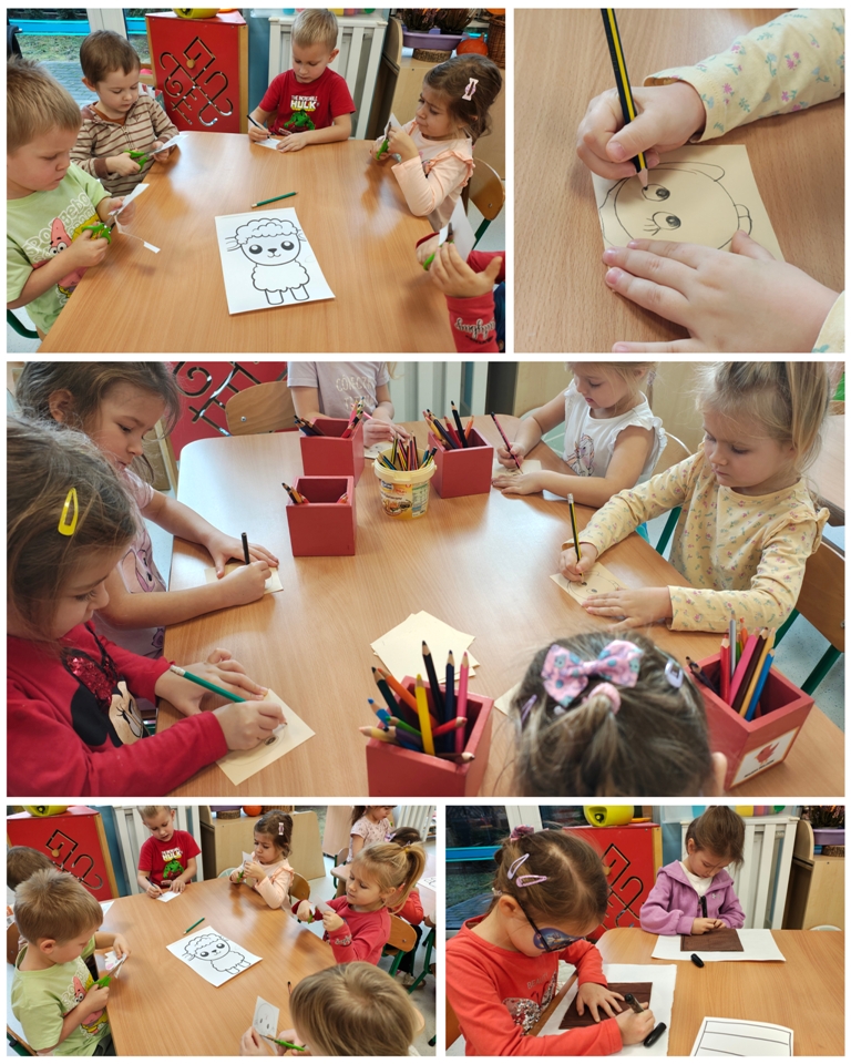 Nasza szopka miała wyjątkowy, sensoryczny charakter – została wykonana z materiałów o różnych fakturach, kolorach i właściwościach, tak aby dzieci mogły ją nie tylko oglądać, ale doświadczać wszystkimi zmysłami. Użyte elementy zachęcały do eksploracji, pobudzały wyobraźnię i w atrakcyjny sposób przybliżały tematykę świąteczną. Dzięki temu tworzenie szopki było nie tylko twórczą pracą plastyczną, lecz także wartościowym doświadczeniem rozwojowym.
