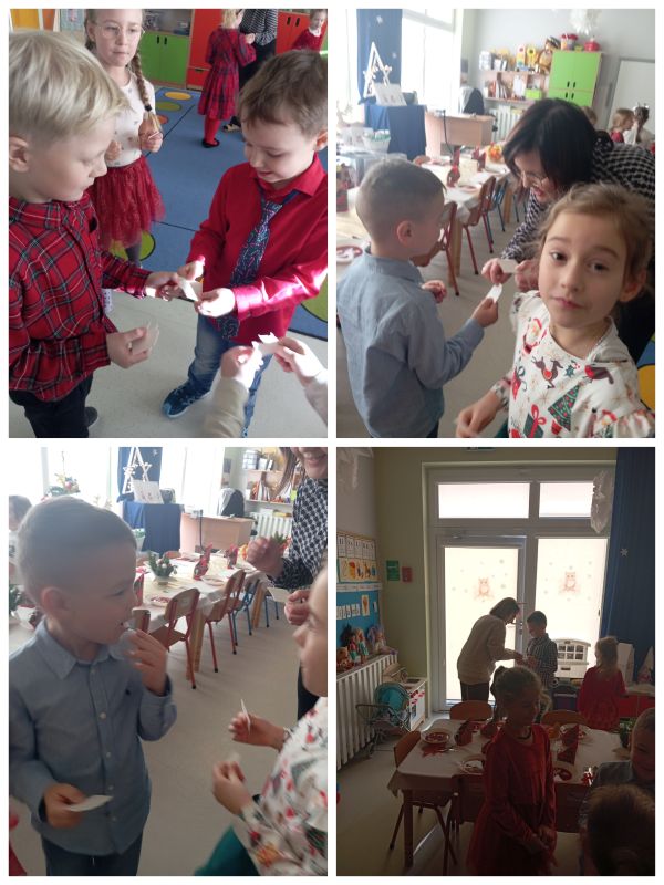 W grupie Sówek odbyło się wyjątkowe, pełne ciepła spotkanie opłatkowe, które wprowadziło dzieci, oraz wychowawców w radosny, świąteczny nastrój. Był to czas wspólnego przeżywania tradycji, wzajemnej życzliwości oraz dzielenia się świąteczną radością. Podczas spotkania wspólne śpiewanie kolęd stworzyło wyjątkowy klimat bliskości i rodzinnego ciepła. Nie zabrakło również świątecznych prezentów. Dzieci otrzymały upominki, które sprawiły im wiele radości i uśmiechu. Z kolei dla rodziców przygotowane zostały przez dzieci drobne, symboliczne prezenty ,które zaniosły do swoich domów.