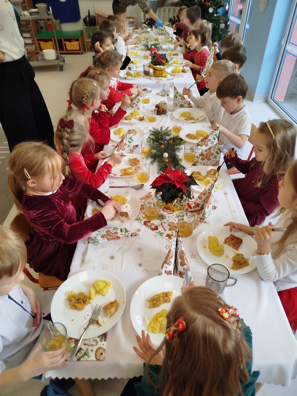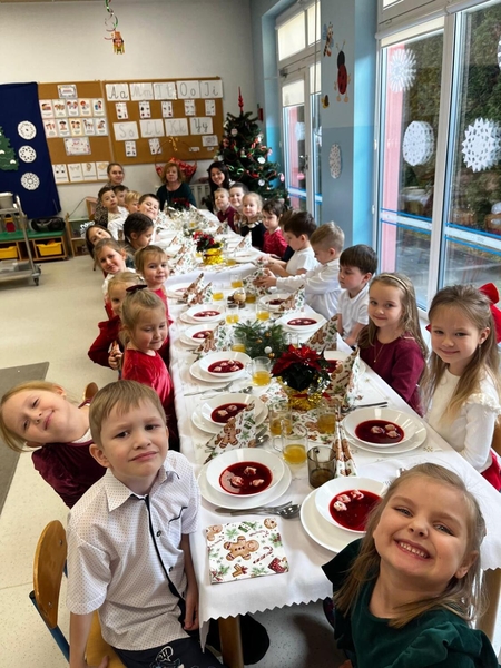 Wigilia Bożego Narodzenia w grupie „Motylków” to dzień pełen ciepłej , radosnej i świątecznej atmosfery. Głośno śpiewaliśmy tradycyjne kolędy i wesołe pastorałki. Łamiąc się opłatkiem ,składaliśmy sobie dobre życzenia. Wspólnie zasiedliśmy do uroczystej wigili, a przedszkole wypełniło się magią świat .