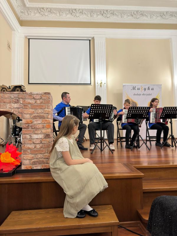 W dniu 20 maja dzieci z grupy „Motylki” wybrały się na wyjątkowe wydarzenie muzyczne – koncert w szkole muzycznej. Była to doskonała okazja, aby najmłodsi mogli poznać różne instrumenty muzyczne, posłuchać ich brzmienia na żywo oraz doświadczyć atmosfery prawdziwego występu. To muzyczne spotkanie było nie tylko źródłem radości, ale również wspaniałą lekcją rozwijającą wrażliwość artystyczną i wyobraźnię dzieci. Dziękujemy szkole muzycznej za ciepłe przyjęcie oraz inspirujące przeżycia!