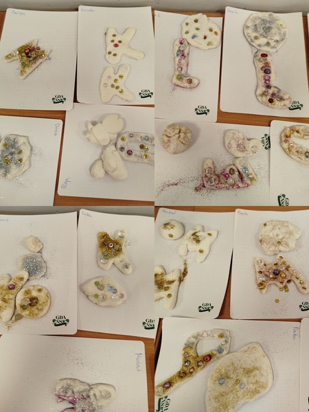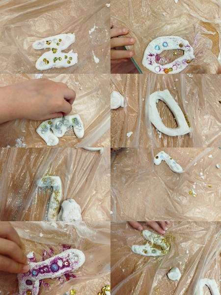 1 października w grupie ” Motylków” odbyły się fantastyczne zajęcia z Panią Aliną Gruca – naszą terapeutką pedagogiczną. Zabawy i ćwiczenia rozwijające koordynację ruchową, motorykę dużą i małą sprawiły przedszkolakom wiele frajdy. Później wykonaliśmy porcelanową masę sensoryczną z której ulepiliśmy literki. I na zakończenie dodaliśmy brokaty, koraliki, cekiny aby wszystko pięknie udekorować. To była świetna zabawa, cudny efekt i skuteczna terapia. Bardzo serdecznie dziękujemy Pani Alinie za zorganizowanie zajęć 😍