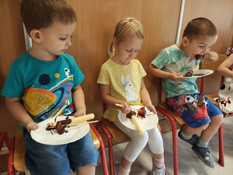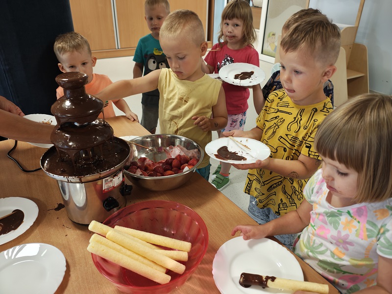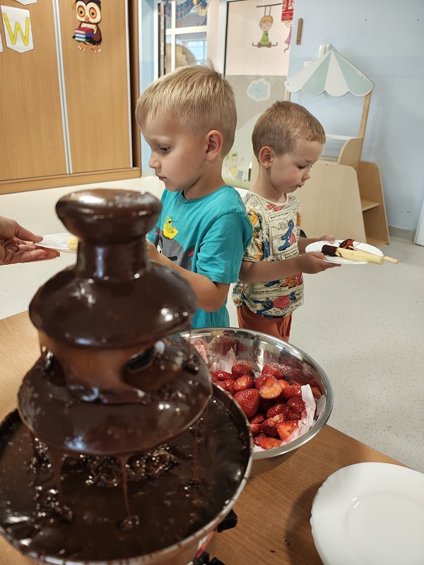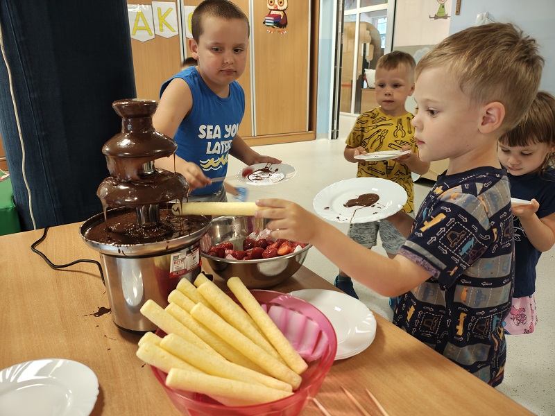 Pani Dyrektor razem z Radą Rodziców zaprosiła wszystkich przedszkolaków ze SŁONECZNEJ CHATKI do wspólnej zabawy. Były lody, piana – party i czekoladowa fontanna. Było też dużo uśmiechu i radości.